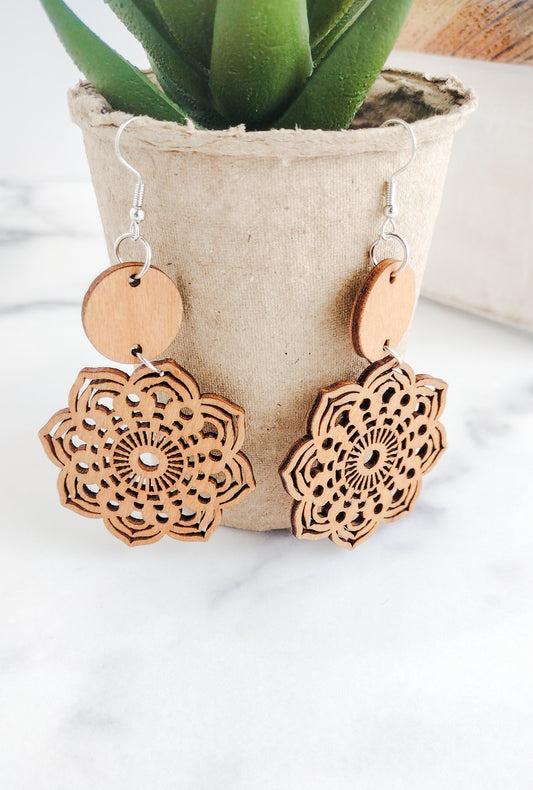 Sold outWood Mandala Earrings